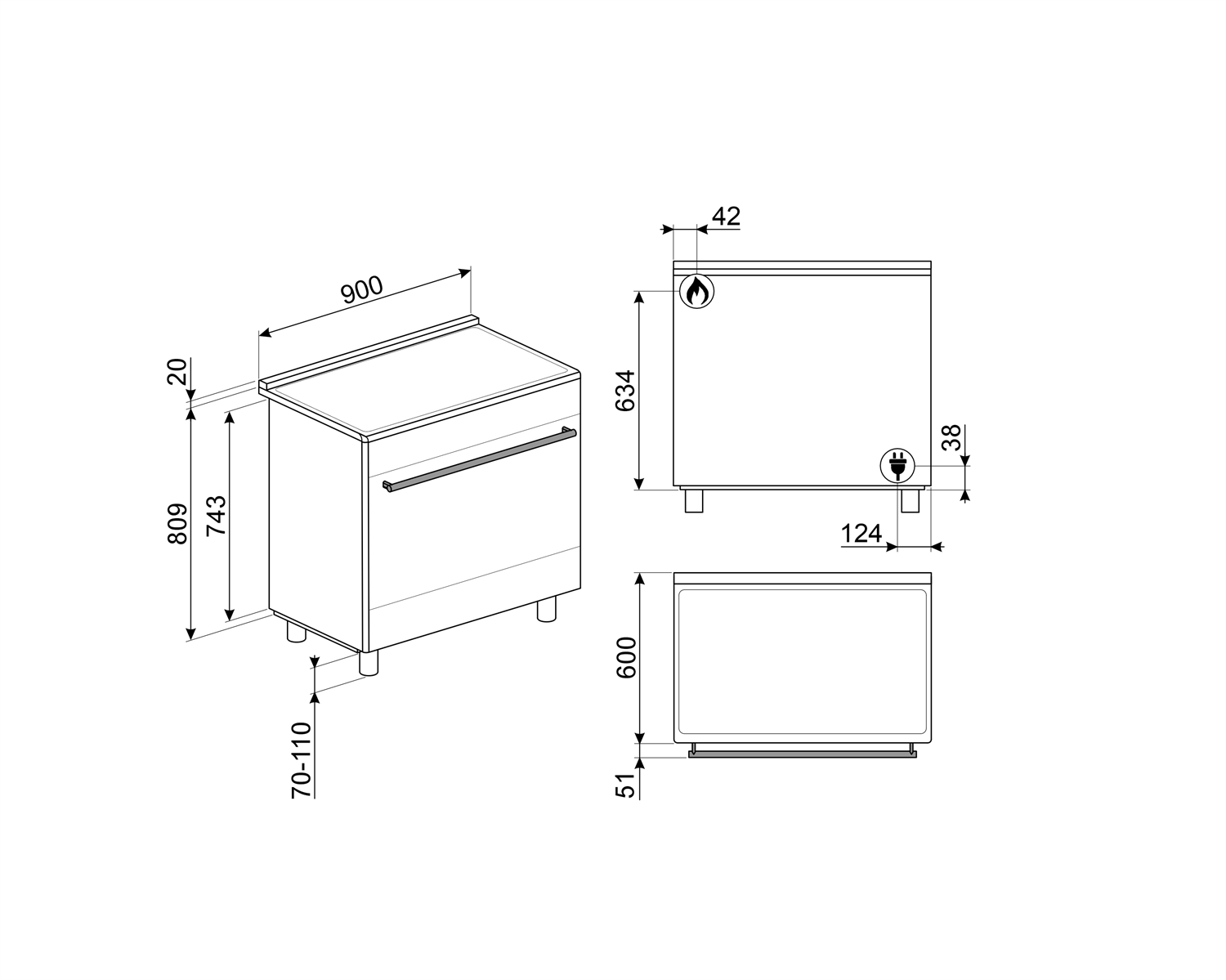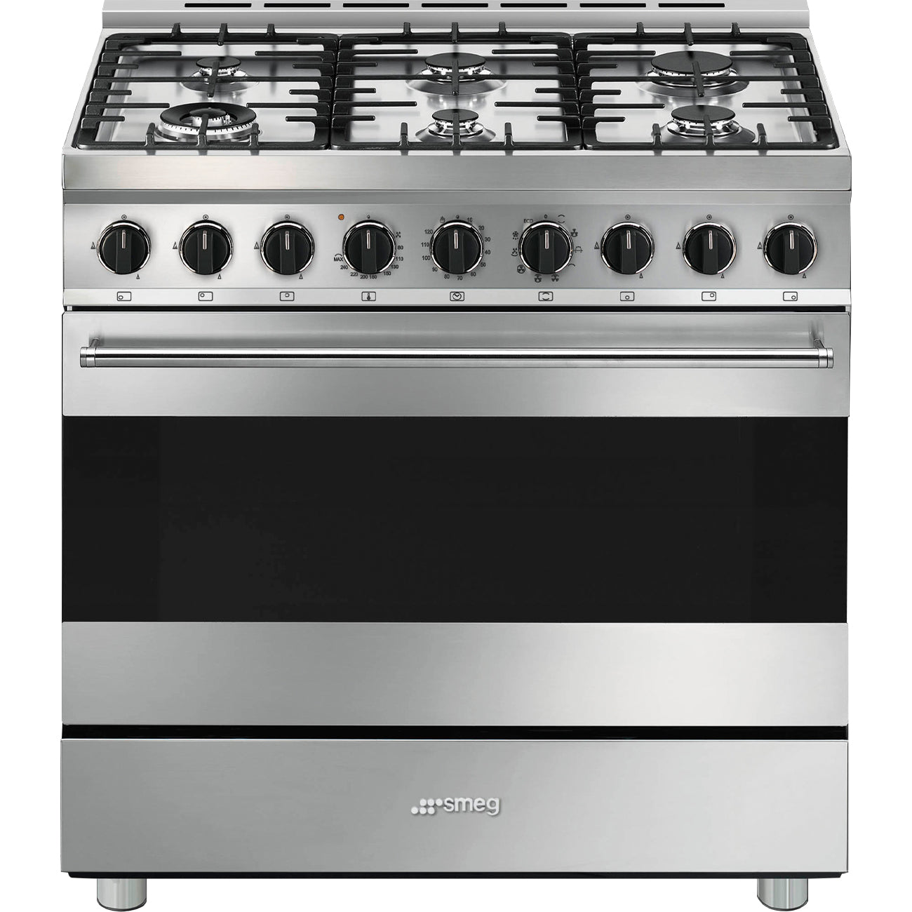 Precio habitual $ 49,800.00 Precio de oferta $ 34,860.00 Guardar 30%Cocina SMEG B91GMX2 90x60 cm Gas – Inox | Horno Eléctrico 115 L