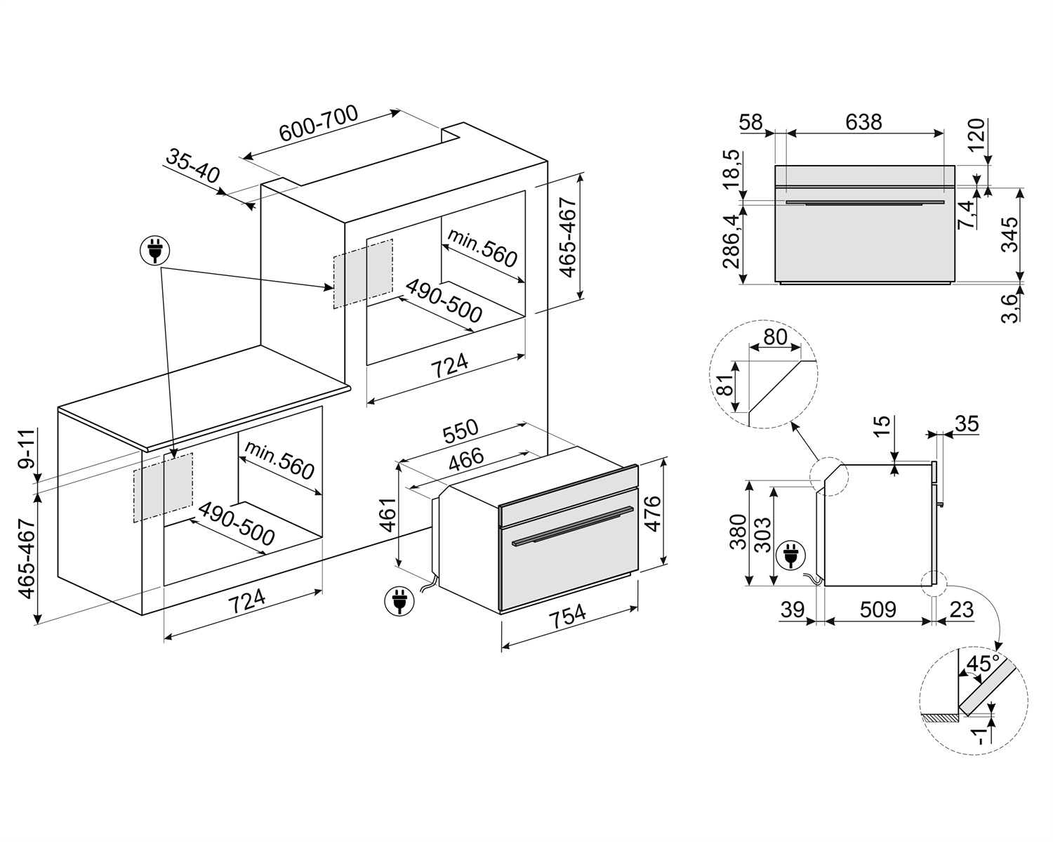 - Horno compacto empotrable de 30”