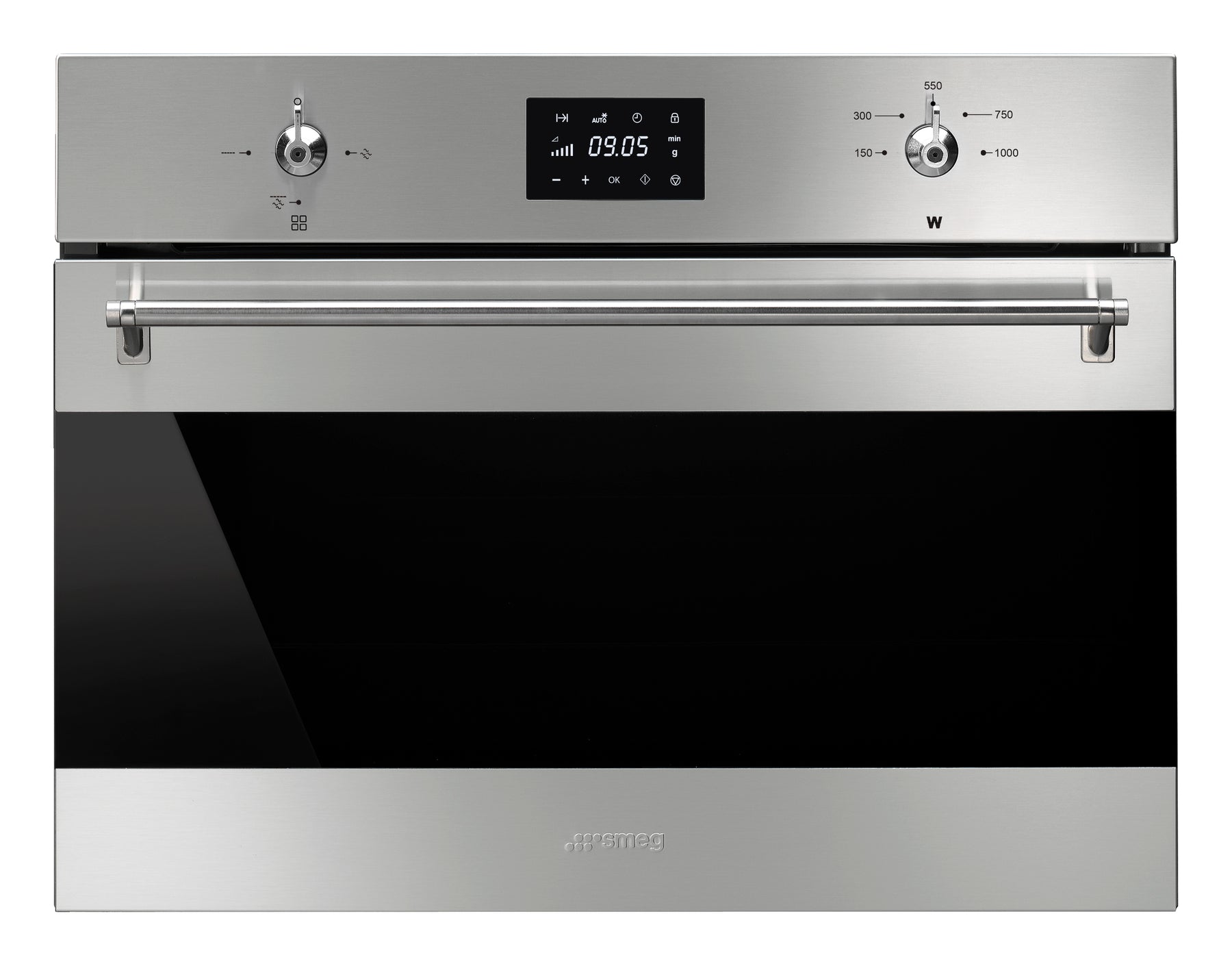 Optimiza tu cocina con el horno compacto Smeg de 45 cm, ideal para espacios modernos que buscan funcionalidad y diseño elegante en acero inoxidable anti-huellas.